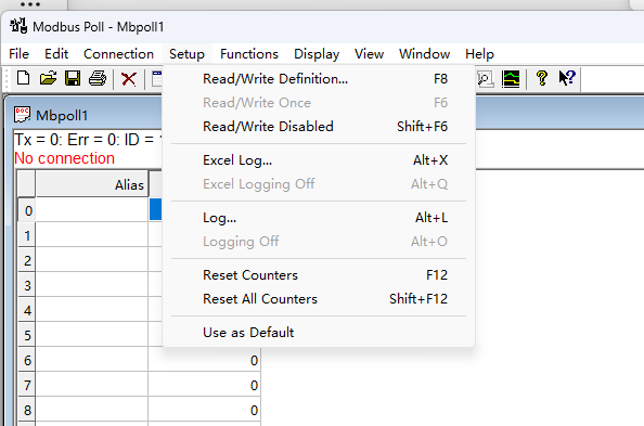 使用Modbus Poll通过modbus读取设备上的信息,Modbus Poll会设置slaveId所以在它日志文件中没有地址ID,设备接收到的数据是没问题的