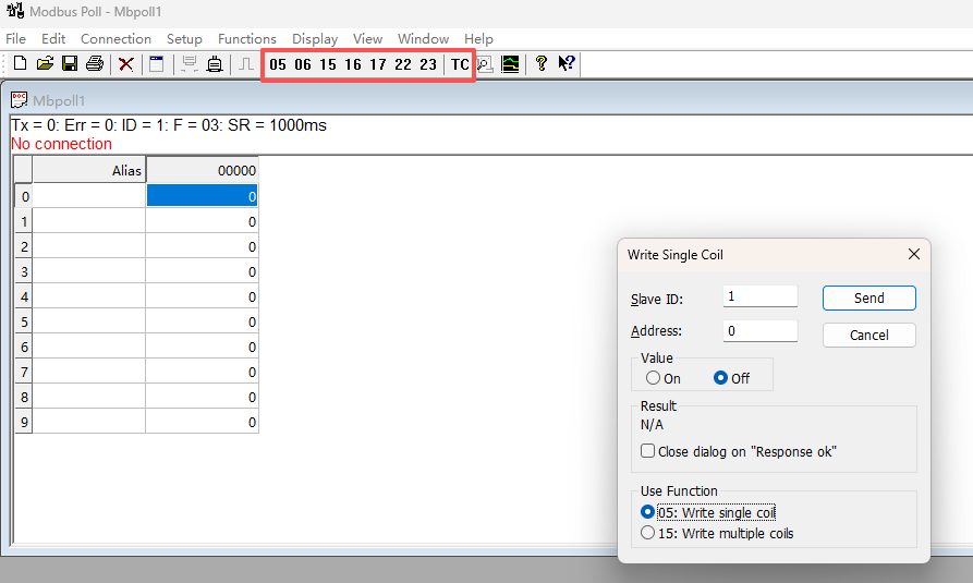 Modbus Poll也有其他的命令,可以自行尝试一下